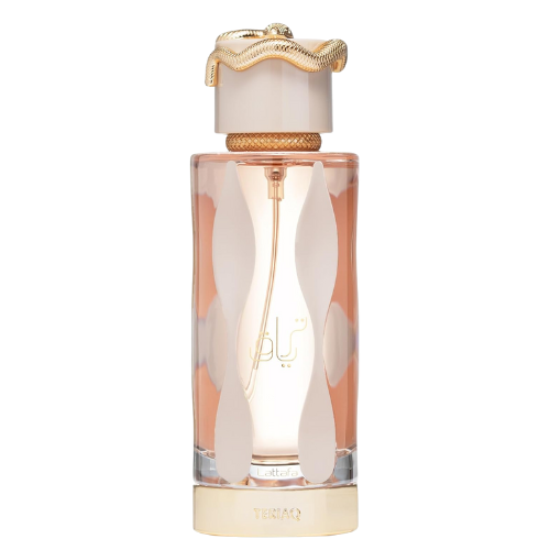 Lattafa Teriaq is a sophisticated unisex fragrance that opens with caramel, bitter almond, and pink pepper before transitioning to a floral heart of rose, honey, and white flowers. The base settles into warm leather, vanilla, and musk for a captivating finish. Perfect for those seeking a balanced scent with sweet, spicy, and earthy dimensions.